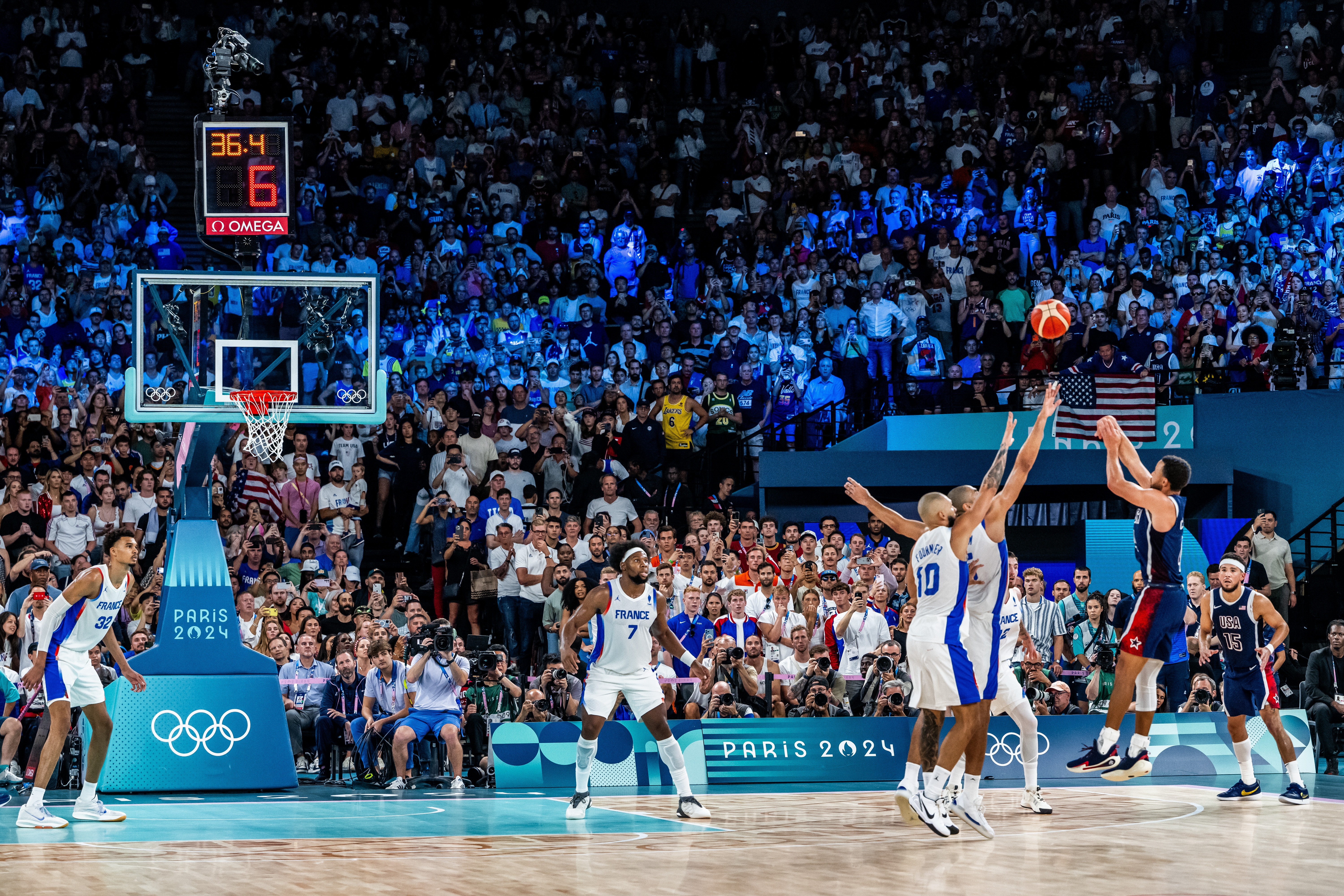 在2024年巴黎奥运会男篮决赛中,库里全场三分球12投8中,贡献24分5助攻2抢断。比赛最后三分钟,他连续飙中4记三分球,直接终结比赛悬念。